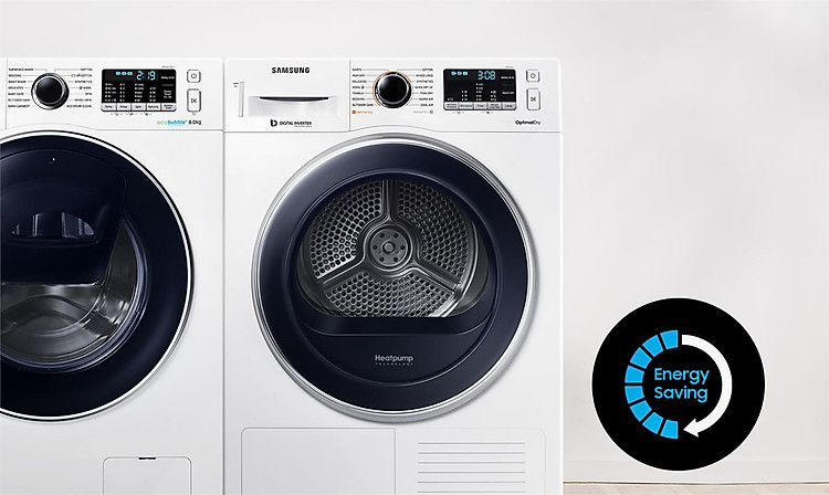 Khám phá giải pháp sấy khô quần áo tối ưu và tiết kiệm hiệu quả cho gia đình bạn với Máy sấy Heatpump 9Kg Samsung DV90M5200QW/SV. Công nghệ Heatpump sử dụng "chất làm nóng" thay cho điện năng, nhanh chóng làm nóng luồng không khí - giúp bạn sấy khô từng sợi vải và tiết kiệm 50% điện năng