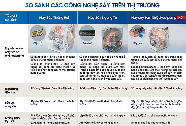 Công nghệ sấy HeatPump (Mới) trên dòng Máy sấy Samsung DV90M5200QW/SV cao cấp